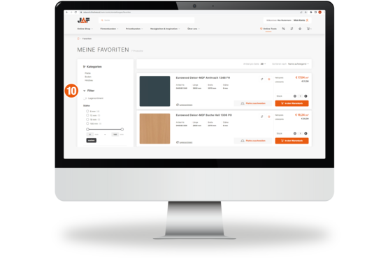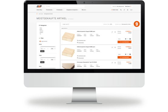 9. U "Moj nalog" dobijate brzi pregled artikala koje ste najčešće ili nedavno kupili od JAF-a. Posebno praktično: Ove stavke se mogu kreirati direktno u "Moj nalog" ili dodijeliti u favorite.