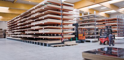 Dostupnost robe od 83000 navedenih artikala - od kojih je 2500 na lageru - proizvodi svih renomiranih proizvođača, kratki rokovi isporuke i izražena logistička osposobljenost odlučujući su faktor u trgovini drvetom i materijalima na bazi drveta. Zahvaljujući zatvorenoj skladišnoj strukturi sa selektivnim centralnim skladištima i natkrivenom skladišnom površinom od 6000 m2, možete biti sigurni da su često traženi proizvodi uvijek dostupni i da se Vaše narudžbe mogu brzo obraditi. Time se rokovi isporuke mogu značajno smanjiti.