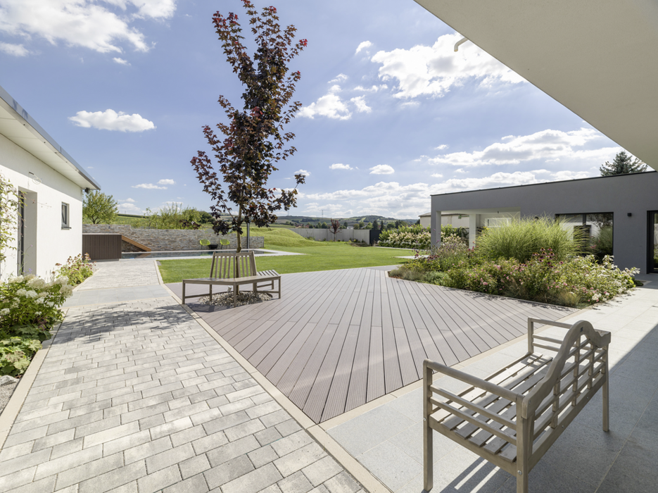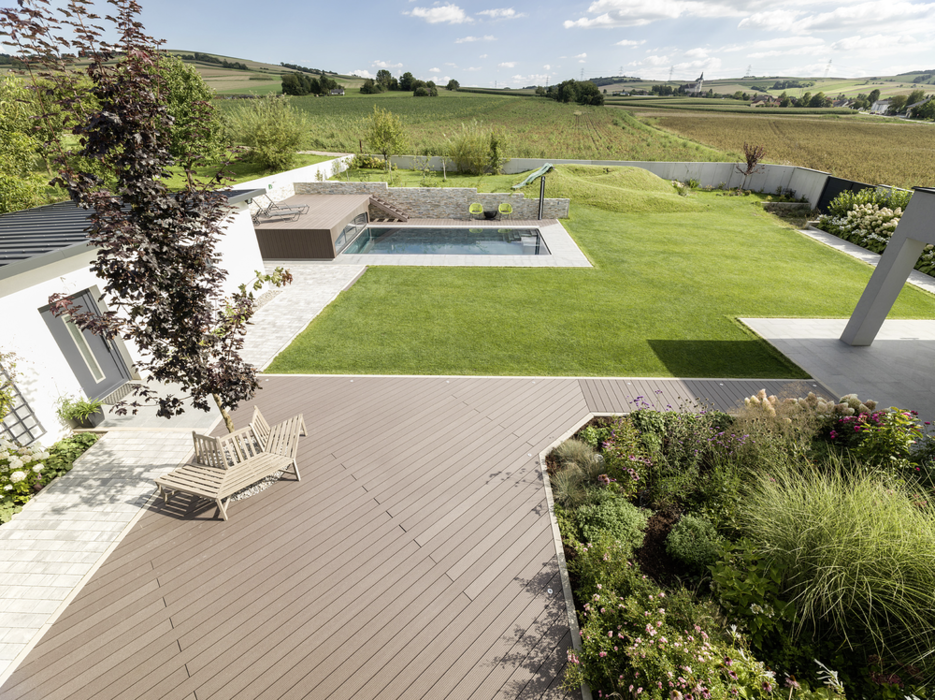 Sa kreativnim idejama i odličnim osjećajem za materijal i formu, porodica u Donjoj Austriji stvorila je svoju ličnu oazu mira: Moderna porodična kuća uklopljena je u skladan vanjski prostor. Elegantan bazen, slikovita vikendica, dječje igralište i vlastiti roštilj oduševljava svojom raznolikošću. WPC decking od UPM ProFi®, koji se koristio na obje terase, kao i za ram bazena i strukturu bazena, preuzima „vodeću ulogu“ na površinama terasa. Materijal je isporučio JAF Stockerau.