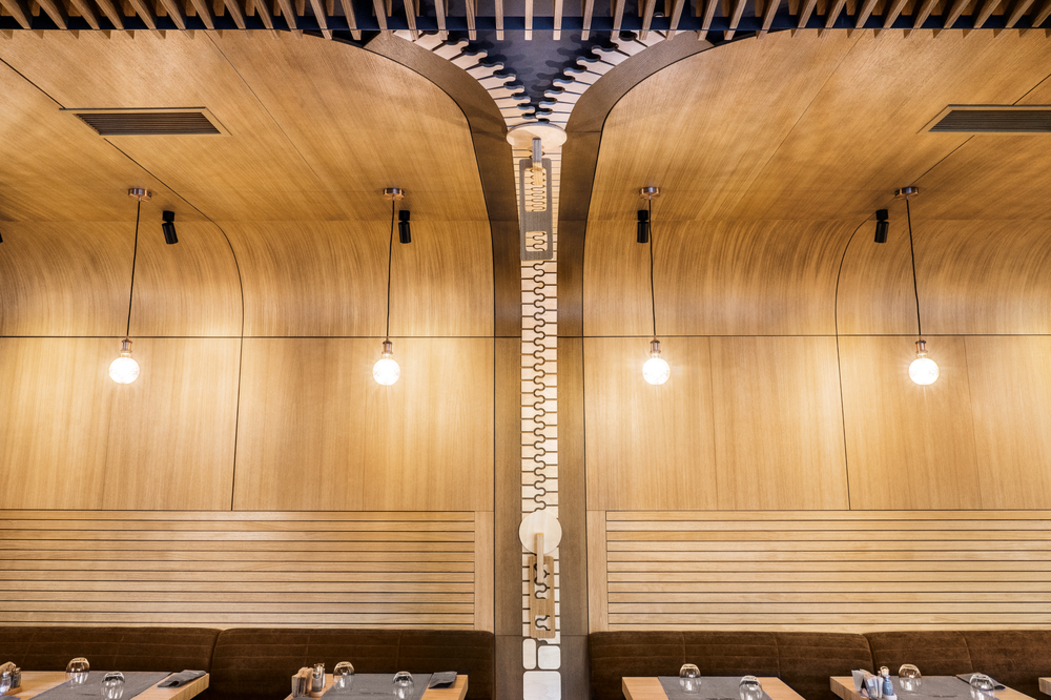 Impresivan dizajn enterijera dočekuje goste Zero Bara. Činjenica da veliki rajsferšlusi od brezove šperploče krase zidove i plafon, samo je šlag na torti.