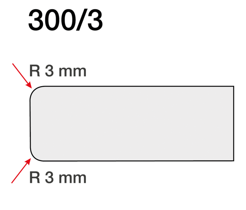 Zaobljen je prednji dužinski gornji i donji rub, radius 3mm.
