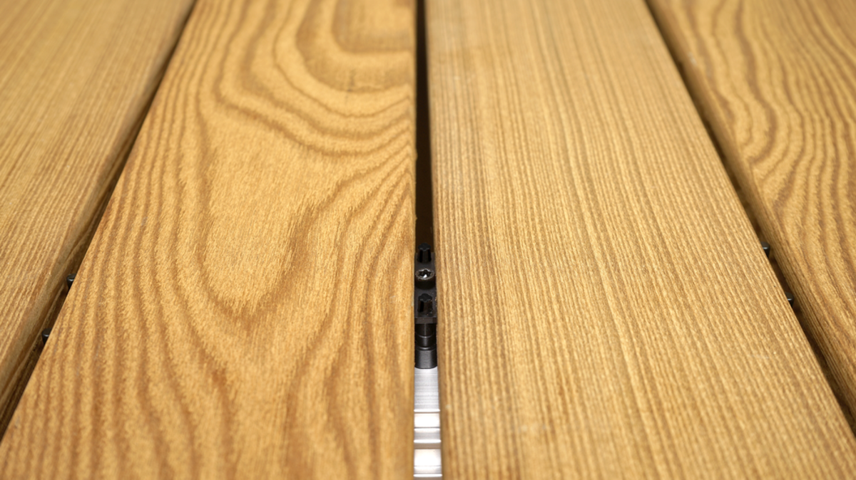 Patentirani sustav spajanja terase LIGO jamči brzu i jednostavnu montažu bočno užljebljenih podnica ili materijala sličnih drvu.